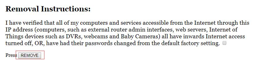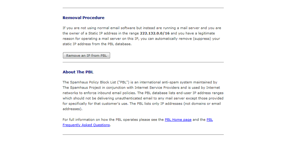 3.在出现的页面中,点击 “remove an IP from PBL”