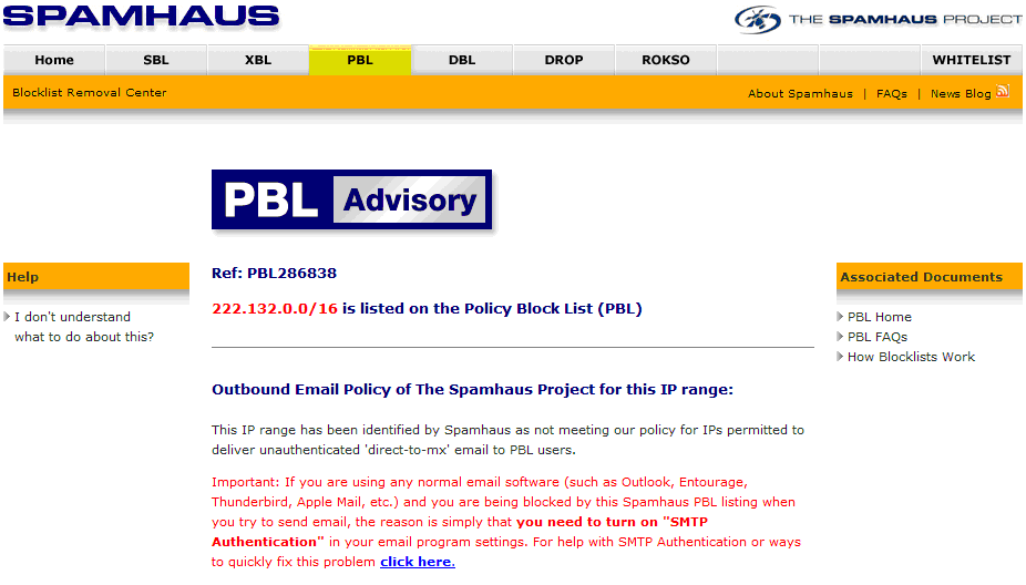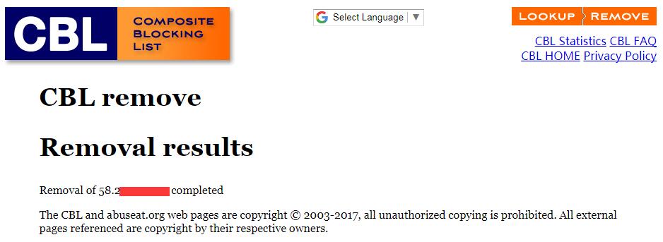 二、CBL/SBL(cbl.abuseat.org)黑名单移除方法: